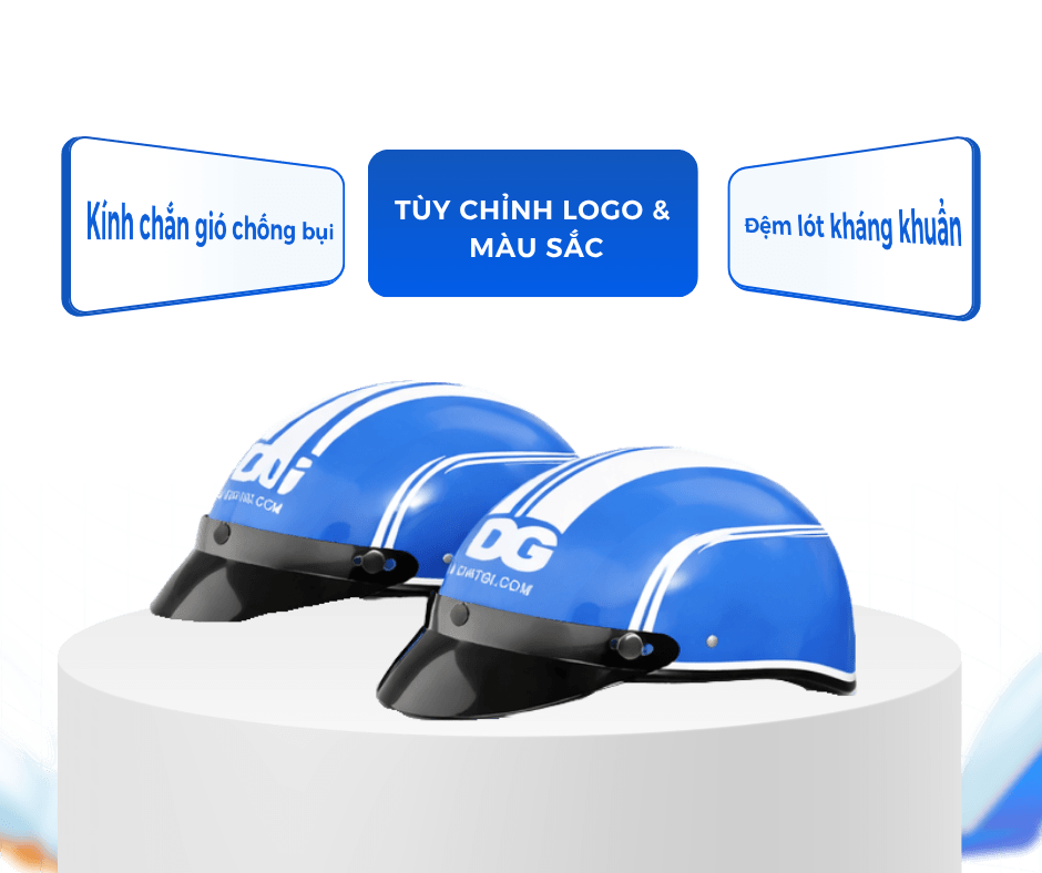 Mũ bảo hiểm là trang bị quan trọng giúp doanh nghiệp tối ưu an toàn, đồng nhất hình ảnh và nâng cao trải nghiệm đội ngũ. Khi trở thành đối tác DG, doanh nghiệp có thể lựa chọn trang bị thêm tiện ích này để hoàn thiện hệ sinh thái vận hành và nhận diện.